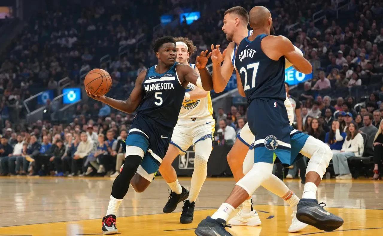 森林狼127-117战胜勇士,这场比赛让勇士球迷十分揪心。库里缺阵,勇士攻防两端都出现问题,最终吞下四连败。森林狼核心爱德华兹状态火爆,全场22投13中,罚球12罚全中,轰下42分8篮板5助攻,统治攻防两端。戈贝尔18分9篮板,多苏穆12分8篮板7助攻,球队七人得分上双。勇士这边波杰姆斯基空砍25分10篮板,波尔津吉斯20分4篮板,即便拼到最后依旧无力回天。目前勇士32胜34负,胜率跌破50%,跌至西部第九,附加赛席位岌岌可危。
